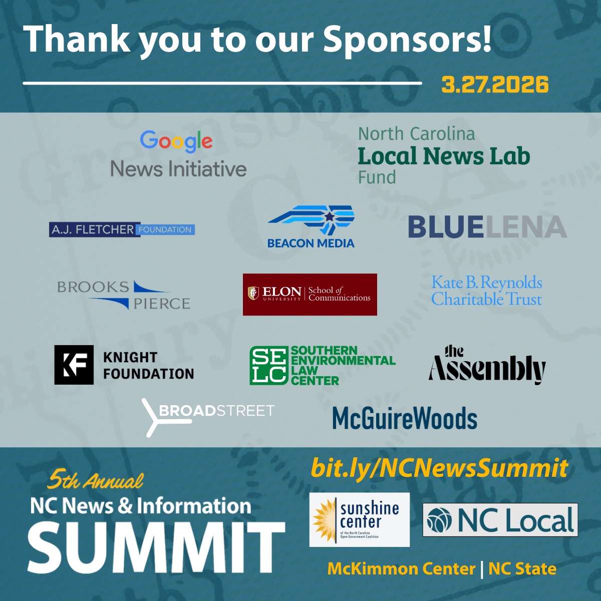We are just 15 days away from the 2026 NC News & Information Summit, taking place March 27 at NC State in Raleigh. Last year, we sold out - so reserve your spot today!