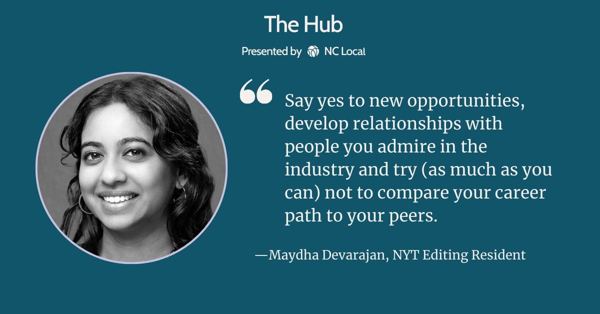 Thank you Maydha for chatting with The Hub during such a busy time and providing these useful and practical insights about careers in local news. We’ll be cheering you on during your NYT Editing Residency and know you’ll continue to make a meaningful impact in newsrooms and communities alike.