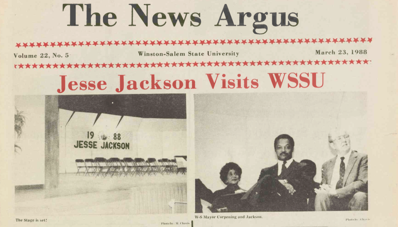 transferred to A&T State in 1960 where he met his future wife and fellow civil rights activist Jacqueline L.B. Jackson. In between serving as student government president and football quarterback, Jackson led local demonstrations against racism, segregation and inequality. Jackson announced his run for president from Raleigh and attracted large crowds of "screaming students and supporters" to Winston-Salem State during his 1988 campaign. And he worked with many faith-based, civil rights and elected officials across the state in the decades that followed.