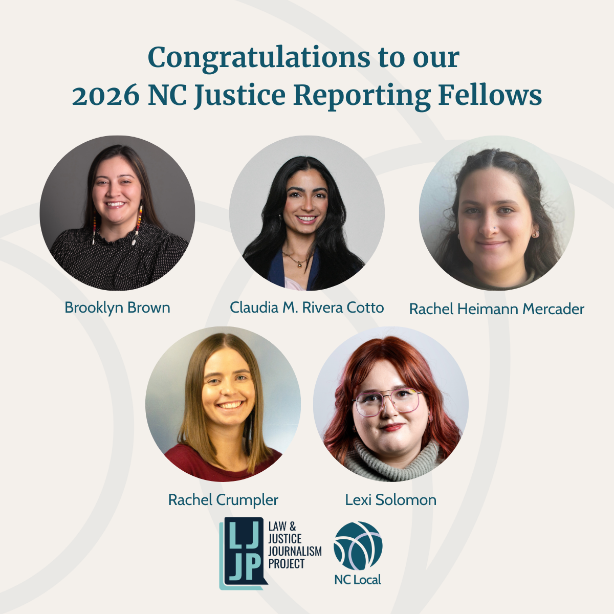 Announcing the 2026 NC Justice Fellows! Five NC journalists will tackle year-long investigative projects with mentors from the Law & Justice Journalism Project.