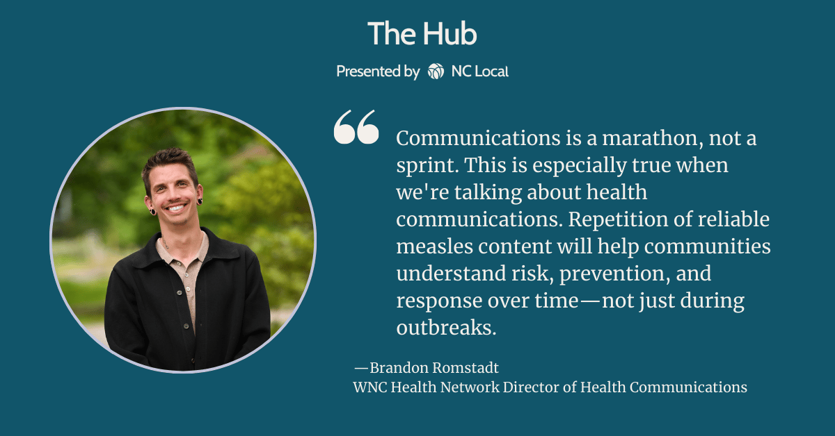 “Much like the illness itself, measles content is spreading,” said Romstadt, who is Director of Health Communications at WNC Health Network. “The power in your keystrokes can't be overstated and your ability to make a positive difference in the lives of our residents is needed now more than ever.”